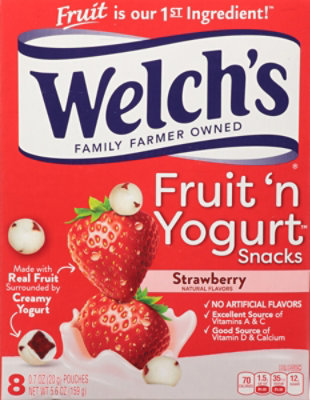 Includes 8ct pouches of Welch’s Fruit ‘n Yogurt Snacks, Strawberry