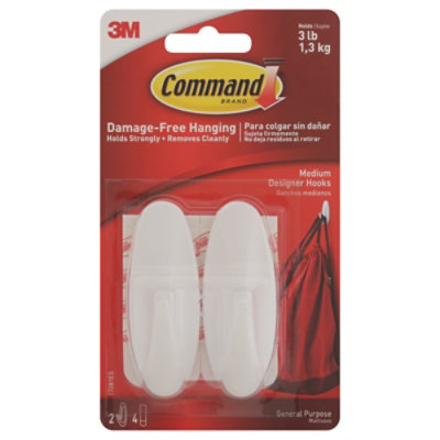 Holds: 3 lb; 1,3 kg. Holds 3 lb (1.3 kg). Damage-free hanging. Holds strongly. Removes cleanly. Limited Warranty and Limitation of Liability (for product sold in USA): This product will be free from manufacturing defects. If defective, your exclusive remedy shall be, at 3M’s option, product replacement or refund. 3M will not be liable for any loss or damage arising from this product, whether direct, special, incidental or consequential. command.com. 1-800-934-7355. Hooks can be reused with Command Medium Refill Strips. Hook made in Mexico. Strips made in USA.