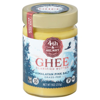 This product is Keto Friendly certified. ketocertified.com. Certified Gluten-free. Lactose free. Non GMO. For more Non-GMO info visit: http://nsfnongmo.org/). Grass-fed. Fuel Happy. What is Ghee? Ghee is a lactose-free, superfood alternative to other everyday butter, butter alternatives, and cooking oils that is made by simply cooking and filtering butter. Use every day for a happier you. Pasteurized-raised. Made from cows not treated with rBST (no significant difference has been shown between milk derived from rBST-treated and non-rBST-treated cows. Certified by NSF. Whole 30 approved. ketocertified.com. http://nsfnongmo.org/. fourthandheart.com. Twitter. Instagram. Facebook. (at)fourthandheart. For more cooking tips visit fourthandheart.com. Please reuse or recycle this container. Proudly made in California.