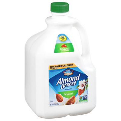 60 calories per serving. Free of cholesterol (almond milk, a cholesterol free food), MSG, lactose, dairy, carrageenan, gluten, soy, casein and egg. 50% more calcium than dairy milk (1 cup of regular milk contains 300 mg calcium vs. 1 cup of Almond Breeze contains 450 mg calcium). Almond Breeze: 35% DV (450 mg); dairy milk; 25% DV (300 mg) (1 cup of regular milk contains 300 mg calcium vs. 1 cup of Almond Breeze contains 450 mg calcium). Excellent source of vitamin D and E. Non-GMO Project verified. nongmoproject.org. almondbreeze.com. Scan me for an exciting experience! SmartLabel: Scan barcode with SmartLabel app for more information. To learn more, please visit us at www.bluediamond.com/faqs. Questions or comments? Write Blue Diamond customer support, PO Box 1768, Sacramento, CA 95812, or call 1 (800) 987-2329. Please include code number found on the top of the carton with all inquiries. almondbreeze.com.
