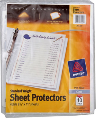 Standard-weight sheet protectors are three-hole punched for versatile use in binders and other covers. Acid-free polypropylene material is archival-safe and won’t lift print. Design is top-loading and has a reinforced binding. Sheet protectors hold letter-size sheets. Standard Weight Sheet Protectors are three-hole punched for versatile use in binders and other covers. Polypropylene material is archival-safe. Design is top-loading. Holds 8 12″” x 11″” sheets.