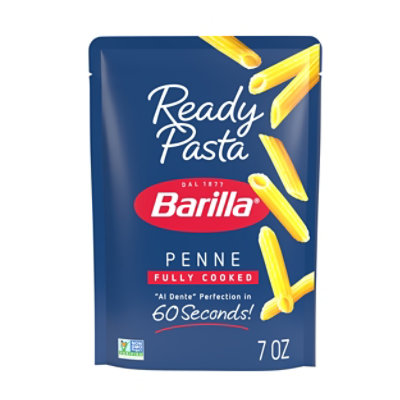 Barilla Ready Pasta Penne pasta is a fully cooked pasta that’s ready in the microwave in just 60 seconds. Made with 3 simple ingredients?a dash of extra virgin olive oil, a pinch of sea salt and authentic Barilla pasta?Ready Pasta has no preservatives and is non-GMO certified. Simply heat the pouch in the microwave then add your favorite pasta sauce or toppings for a quick and delicious dish or pasta meal.