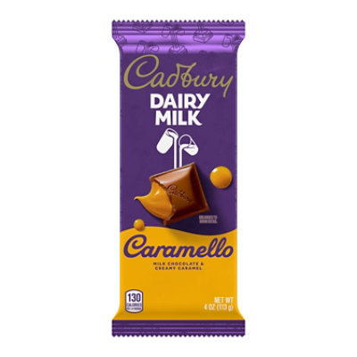 Contains one (1) 4-ounce CADBURY DAIRY MILK CARAMELLO Milk Chocolate and Creamy Caramel Candy Bar