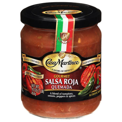 Casa Martinez Salsa Roja Fire Roasted Quemada Medium Jar – 16 Oz