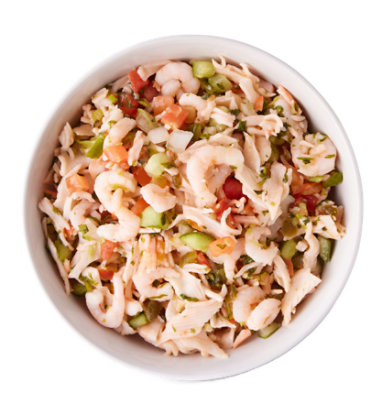 Ingredients: Red Tomatoes,Shrimp,Cucumbers,Water,Salt,Raw Onions,Fish Protein (alaska Pollock And Or Pacific Whiting,Msc Certifed),Lime,Tomato Concentrate,Cilantro Leaves,Pea Starch,High Fructose Syrup,Contains 2% Or Less: Modified Tapioca Starch,Ascorbic Acid (color),Benhin,Carmine,Carrageenan,Citric Acid,Artificial Color,Crabmeat,Disodium Inosinate,Dried Clam Broth,Eggs,Garlic Powder,Monosodium Glutamate,Natural And Artifical Flavor (extracts Of Blue Crab,Snow Crab,Lobster,Alaskan Pollock),Natural Flavor,Onion Powder,Paprika,Potassium Chloride,Potato Starch,Raw Jalapeno Peppers,Red 40,Red Chili Pepper,Rice Wine (water,Rice,Koji),Sea Salt,Sodiumpyrophosphate,Sorbitol,Spices,Sugar,Vinegar,Yam Flour
