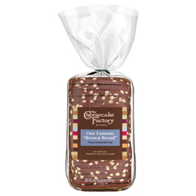 No artificial preservatives or flavors. Our Famous ”Brown Bread”: The Cheesecake Factory is the fantastical food experience that is absolutely certain to satisfy. Now you can enjoy our famous ”brown bread” – at home. Loved around the world, our brown bread baguette is a Cheesecake Factory signature taste – now available to enjoy at home in Mini Baguettes, Dinner Rolls and Sandwich Bread. TheCheesecakeFactoryAtHome.com. Please visit our website for more information. TheCheesecakeFactoryAtHome.com. For product questions or comments bakehouseinquiries@grupobimbo.com.