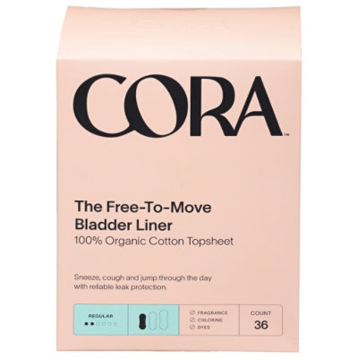 100% organic cotton topsheet. Sneeze, cough and jump through the day with reliable leak protection. No fragrance. No chlorine. No dyes. Here comes confidence. Traps Leaks: Quickly pulls liquid into the core-keeping you dry and comfortable. Soft and Flexible: So thin and soft you’ll forget you’re wearing it. Organic Cotton Topsheet: Hypoallergenic and dermatologically tested. Made without harsh chemicals. Lock Odors Away: Absorbent layers keep smells at bay without synthetic fragrances. Find your Flow. Tip – Great to wear during daily exercise or while laughing with your best friend. Regular liner. Long liner. Extra long liner. Made Without: chlorine; dioxins; dyes; fragrance; latex; chloroform. At Cora, we provide comfort through the uncomfortable. From the take-on-the-world highs to the stay-in-bed lows, we’re here for you. If we had it our way, painful periods, leaky bladders, and complicated bodies would be a thing of the past. Until then, we’re throwing everything we’ve got at making products that give you comfort and peace-of-mind when you need it most. 100% Happiness Guarantee: Our mission is to help you feel amazing in your body. If you are not 100% delighted by our goods, we’ll make it right. Reach out to us online at support.cora.life. cora.life. (at)our.cora. Learn more cora.life. Every body deserves comfort. We believe everyone should have access to period care-full stop. So, with each Cora purchase, we provide period products and body literacy resources to people who might otherwise go without. Join us and read more about Cora’s impact at cora.life. Certified B Corporation. Recycle box. Made in China.