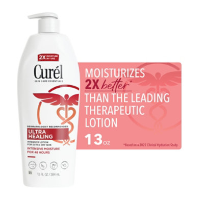 Searching for a hand and body moisturizer that is both gentle and effective for extra dry skin? From Curel Skincare, meet the Dermatologist Recommended Curel Ultra Healing Intensive Lotion For Extra-Dry, Tight Skin. Ideal for dry or severely dry skin, this intensive formula provides instant relief and helps protect skin from dryness for over 24 hours. Curel Ultra Healing Lotion, with Advanced Ceramide Complex, works at the source of dryness to help repair the skin?s moisture barrier and prevent the symptoms of dry skin from returning. Curel Ultra Healing lotion is dermatologist tested and leaves skin moisturized and healthy-looking. This non-greasy lotion is easily absorbed into dry skin and moisturizes 1.95 times better than the leading therapeutic moisturizer. Also, the fact that this lotion is Fragrance Free is ideal for anyone who wants a unisex hand and body lotion for dry hands or a men moisturizer. Because the formula is unisex and not just a body lotion for women, it is also a lotion for men ?? really, it?s an everyone lotion. The formula is Cruelty Free, Paraben Free, Dye Free, Phthalate Free, Non-comedogenic and Vegan Friendly. This skin hydrating lotion is suitable for dry, sensitive skin and contains naturally hydrating agents to help even the extra dry, tight skin feel soft, supple and restored. Curel Ultra Healing Intensive Lotion For Extra-Dry, Tight Skin is great for all over body use.