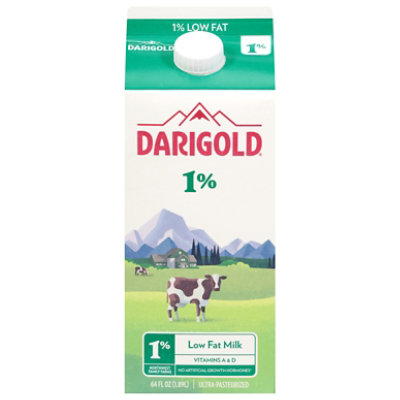 Low fat. A gluten free product. 1% milkfat. Vitamins A & D. Northwest family farms. No artificial growth hormones*. Ultra-pasteurized. Family-owned farms. Simple ingredients. Always delicious. Homogenized. According to the FDA, no significant difference has been shown between milk derived from rbST treated and non-rbST treated cows. * Does not contain the artificial growth hormone rbST. Grade A. www.darigold.com. how2recycle.info.