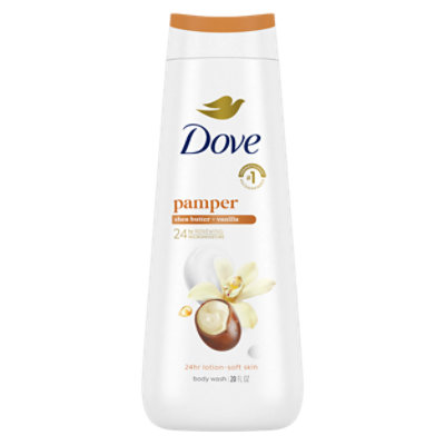 PAMPER: Dove Pampering Body Wash has a rich, creamy texture and is full of skin-loving nourishers to moisturize your skin as the shea butter and warm vanilla scent pampers your senses with every shower