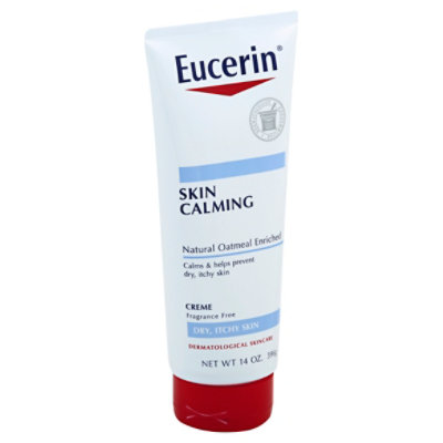 Dry, itchy skin. Natural oatmeal enriched. Calms & helps prevent dry, itchy skin. Dermatological skincare. Dermatologist recommended. Since 1900. Eucerin Skin Science That Shows: For over 100 years, Eucerin has led skin science innovation with an uncompromising commitment to quality. Today, our products are respected and recommended by dermatologists. Trust Eucerin to give you and your family the feeling of confidence that comes from radiant, healthy-looking skin. Skin Calming Creme offers a unique formula that moisturizes and calms dry, itchy skin. Natural oatmeal enriched to calm, dry, itchy skin. Emollient-rich formula moisturizes and helps prevent dry, itchy skin. Dermatologist recommended brand. Delivers 24 hour hydration. Fragrance, dye and paraben-free. Learn more at www.EucerinUS.com. Questions? Comments? 1-800-227-4703. Made in Mexico.