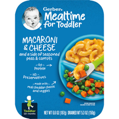 Gerber Macaroni and Cheese is perfect for baby led feeding. With wholesome ingredients designed for tiny hands, this toddler pasta makes mealtime for toddler easier. To prepare, puncture seal on both compartments and microwave for 30 seconds. Then remove seal and test temperature before serving. Gerber?s dedication to quality has been and always will be our highest priority. We’re committed to being your partner in parenthood with quality ingredients & expert guidance.