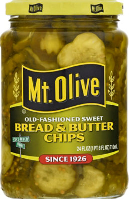 Mt. Olive Bread & Butter Chips feature the old fashioned sweet pickle flavor that you have always loved. Both salty and sweet, Mt. Olive Old Fashioned Sweet Bread & Butter Chips are a crunchy pickle chip that taste great as a side, on sandwiches, or with a salad! These delightful Bread & Butter Chips feature crispy cucumbers thinly sliced and mixed with vinegar, celery & mustard seeds, and onion flakes for a mouthful of flavor. These classic-cut Bread & Butter pickle chips pack a bold taste. Mt. Olive Pickle Co. has been producing your favorite pickles for nearly 100 years. Our crunchy, flavorful pickle goodness comes from the corner of Cucumber & Vine in our hometown in North Carolina.