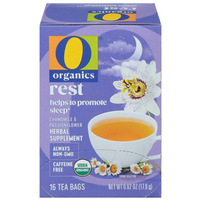 Caffeine free. Always Non-GMO. If it’s organic it’s Non GMO. Rest helps to promote sleep. Since 2005. Organic for all! how2recycle.info. Scan for more information. (This statement has not been evaluated by the FDA. This product is not intended to diagnose, treat, cure or prevent any disease.) Product of Canada.