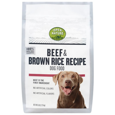 No artificial flavors. No artificial colors. Open Nature Beed & Brown Rice Recipe Dog Food provides 100% complete and balanced nutrition. There is no need to add supplements unless your veterinarian specifically recommend it. 100% money back guarantee. Quality & satisfaction 100% guaranteed or your money back. how2recycle.info. Scan for more information. Made in the USA with domestic and imported ingredients.