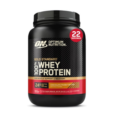 Artificially flavored. 24 g protein per serving. 2 g sugar; 130 calories; 5.5 g BCAAS**. **Naturally occurring amino acids. Gluten free. For muscle support & recovery. 100% of the protein from whey. Why gold standard 100% whey? The Glod Standard for protein quality has fueled billions of workout recoveries worldwide. 24 grams of high-quality protein per serving to help build muscle (a). Whey Protein Isolate (WPI) is the primary ingredient with further carbohydrates and fat isolated out. 11 grams of naturally occurring Essential Amino Acids (EAAs) to support muscle recovery. Sports. Strength training. Active style. Optimum Nutrition has been trusted to provide the highest quality in post-workout recovery, pre-workout energy, and on-the-go sports nutrition for over 35 years and in 90 countries. After careful supplier selection, ingredients are tested to assure purity, potency and composition. We hold ourselves to the highest production standards, all so you can unlock your body’s full potential. Serving scoop included, but may settle to the bottom during shipping. No artificial growth hormones*. Contents sold by weight not volume, settling will occur. *No significant difference has been shown between milk derived from rBST-treated and non-rBST treated cows. (a)When taken over time with regular resistance training. Informed: We test. You trust. Choice regularly tested for banned substances. Authentic Optimum Nutrition Product. optimumnutrition.com/authentic. how2recycle.info. optimumnutrition.com/authentic. 1 (800) 705-5226. Optimum Nutrition is a proud partner with how2recycle. Manufactured in the USA. This product contains ingredients of international and domestic origin.