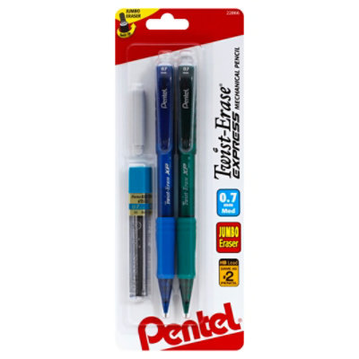 Pentel Twist-Erase Express Automatic Pencils With Jumbo Eraser 0.7 Mm Medium – 2 Count