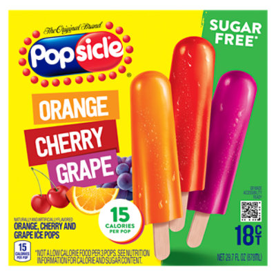 Popsicle?Sugar Free Ice Pops are an easy dessert for any occasion. Each variety box is packed with three classic flavors: orange, cherry, and grape