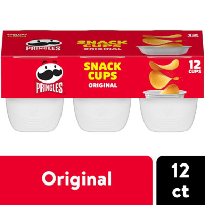 Includes 1, 8oz tray containing 12 cups of ready-to-eat Pringles Original Snack Cups potato crisps chips; Packaged for freshness and great taste