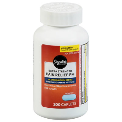Signature Select/Care Pain Relief PM Caplet Acetaminophen 500mg Extra Strength Aspirin Free – 200 Count