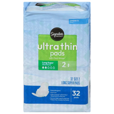 Signature Select/Care Ultra Thin Super Absorbency With Flexi Wings Maxi Pads – 32 Count