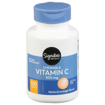 Signature Select/Care Vitamin C 500mg Orange Chewable Dietary Supplement Tablet – 100 Count