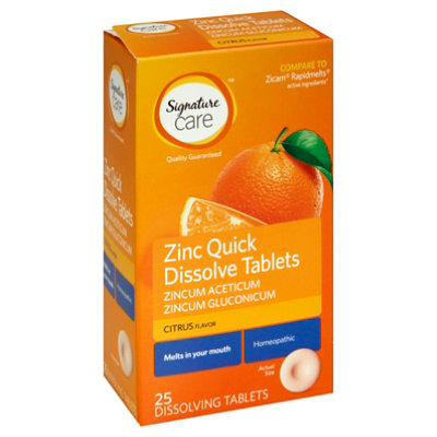 Signature Select/Care Zinc Quick Dissolve Aceticum & Gluconicum Citrus Tablet – 25 Count