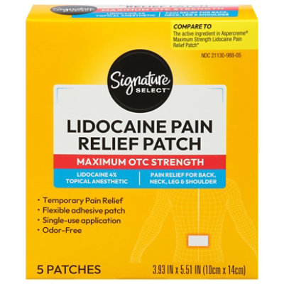 Signature Select Lidocaine Pain Relief Patches Maximum Strength 5 Ct – 5 CT