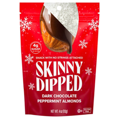 SkinnyDipped Dark Chocolate Peppermint Almonds Pouch – 3.5 Oz