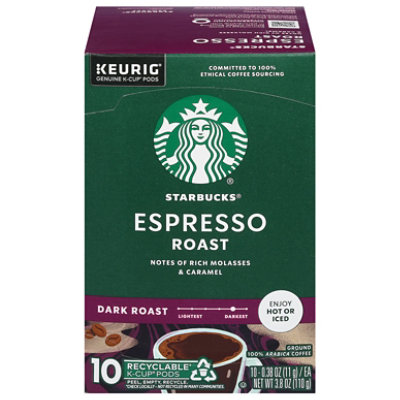 Notes of rich molasses & caramel. Keurig genuine K-cup pods. Enjoy hot or iced. The story of espresso roast. First created in 1975, this multi-region blend still serves as the foundation of our handcrafted espresso drinks in Starbucks stores around the world. The perfect melding of beans and roast reveals notes of rich molasses and a bold, caramelly sweetness a flavor profile so incredible it’s never been changed. Delicious as a cup of coffee on its own or balanced with milk. Only genuine K-cup pods are optimally designed by Keurig for your Keurig coffee maker to deliver the perfect beverage in every cup.