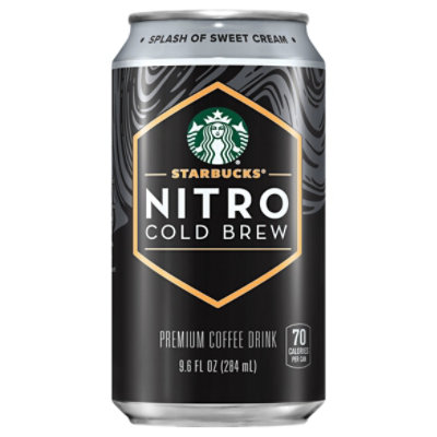 70 calories per can. Splash of sweet cream. Nitrogen-infused cold brew. Our signature black cold brew is infused with nitrogen the moment you open it, creating a rush of creamy texture and smooth, delicious taste. Crafted to perfection with just the right amount of sweet cream. starbucks.com. Visit starbucks.com. For comments or questions, call 1-800-782-7282.