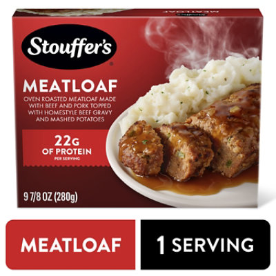CRAFTED WITH QUALITY YOU CAN TASTE: Stouffer?s frozen dinners are thoughtfully crafted with flavorful, quality ingredients. Our oven roasted meatloaf is made with beef and pork, topped with homestyle beef gravy and mashed potatoes