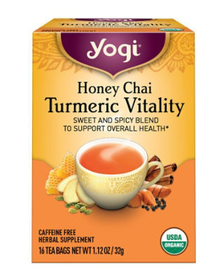 Yogi Honey Chai Turmeric Vitality tea is an intriguing Chai tea blend that combines Turmeric, traditionally used in Ayurveda for its abundant health-promoting qualities, with naturally sweet Organic Honey Flavor and rich, warming spices including Cinnamon, Cardamom, Ginger, and Clove. Enjoy deliciously spicy-sweet Yogi Honey Chai Turmeric Vitality tea throughout the day to support your overall health and well-being.*
